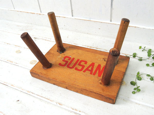 犬&ネコ Dog Cat イラスト・アンティーク・木製 スツール 踏み台 子供イス USA