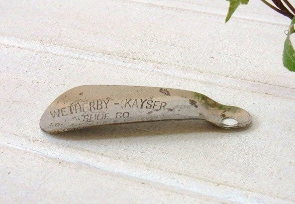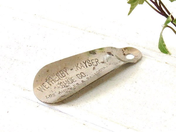 アメリカで見つけました・・カリフォルニア州・ロサンゼルスで誕生した老舗・女性シューズブランド『Wetherby Kayser Shoe Co.』のノベルティ(販促品)・スチール製・ヴィンテージ・靴べらです。