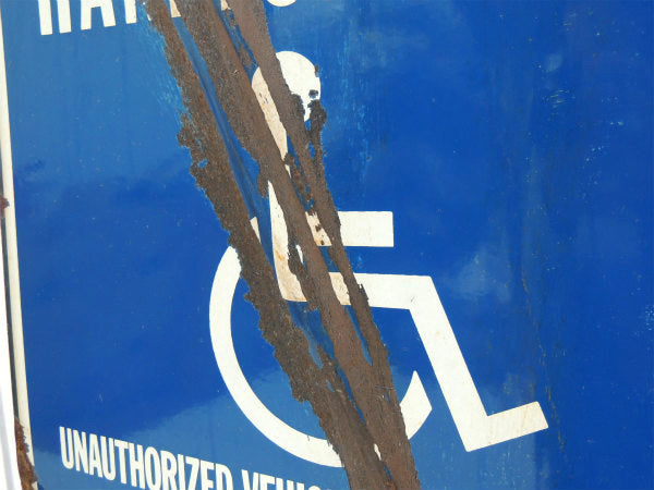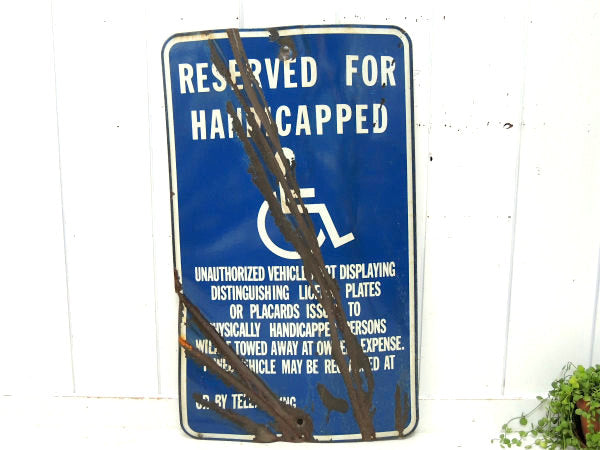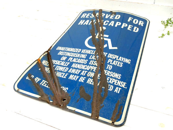 アメリカ西海岸 カリフォルニア州で見つけました・・大きな”ハンディーキャップ”ホーロー製のストリートサイン・ヴィンテージ・道路標識・駐車サインです。