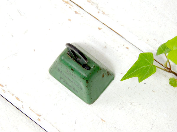 アメリカでみつけました・・『THE NEBRASKA FARMER』ネブラスカ農家さんの小さなノベルティ(販促品)・アンティーク・ハンドベル(呼び鈴)・グリーンベルです。