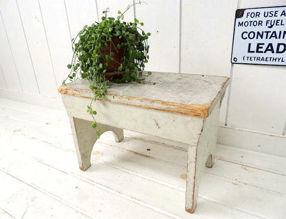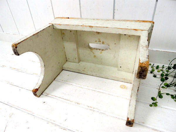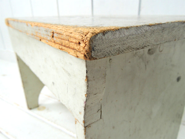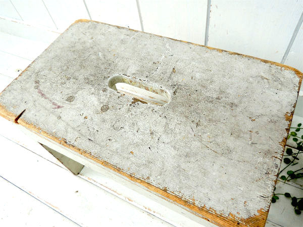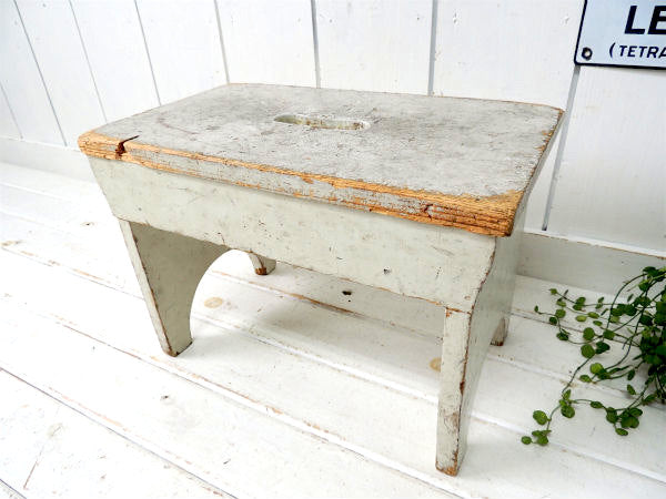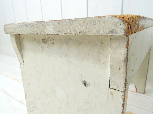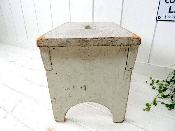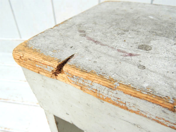アメリカ合衆国・カリフォルニア州 サクラメント郊外で見つけました・・白いペンキの剥げた木製 アンティーク・踏み台(スツール/ローチェア)です。