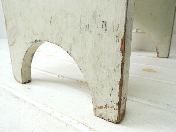 US ホワイト・ペンキ シャビーな木製 アンティーク スツール 踏み台 ローチェア 椅子