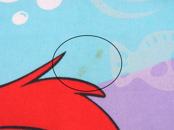 プリントの発色良く、生地もしっかりしておりますが、数箇所に薄いヨゴレがございます。