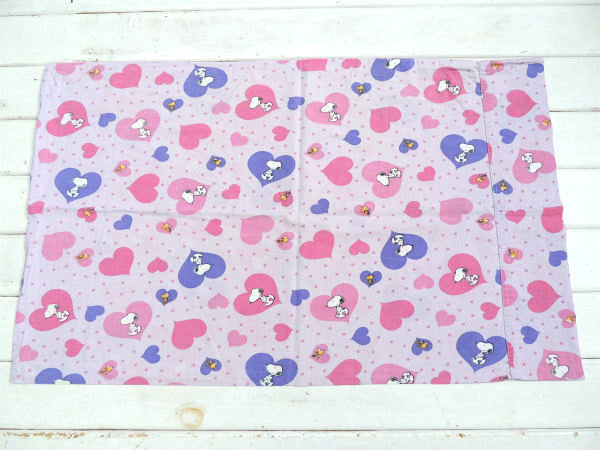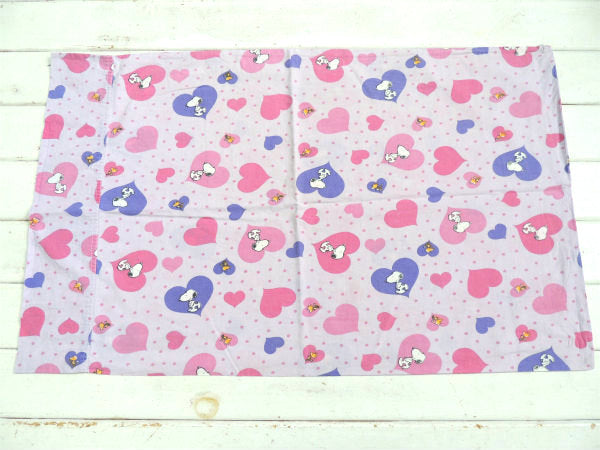 アメリカで見つけました・・『スヌーピー&ウッドストック』のハート柄・USEDピロケース(枕カバー)です。