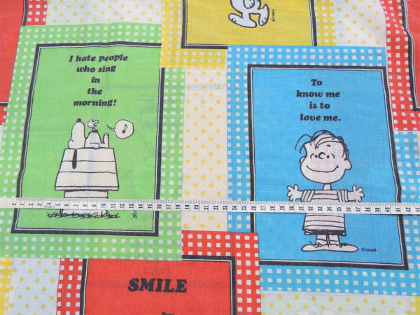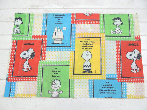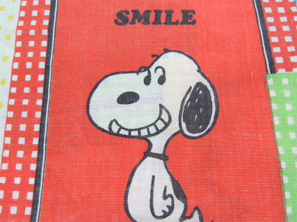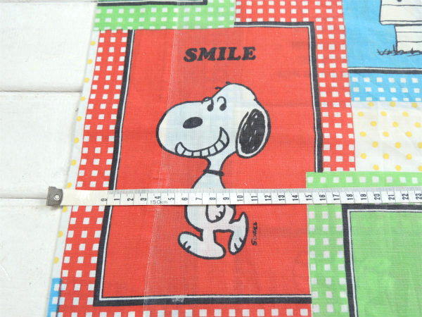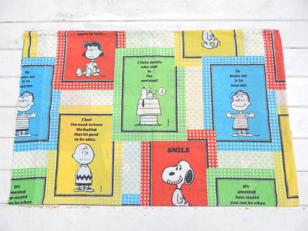 アメリカで見つけました・・『ピーナッツの仲間たち』のSMILEスヌーピー・パネル柄・1970年製・ヴィンテージ・USEDピロケース(枕カバー)です。