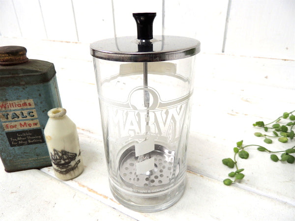 1960's・BARBER・理髪店・MARVY・ヴィンテージ・ガラス瓶/蓋付き消毒容器