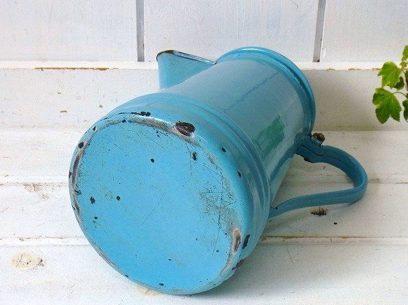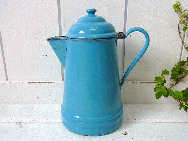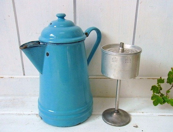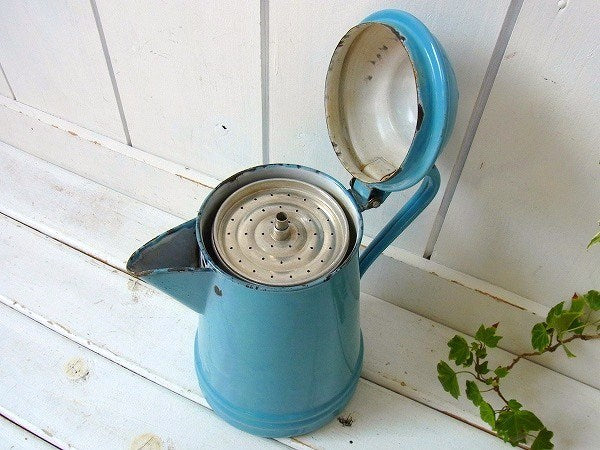 水色・ホーロー製・8カップ・アンティーク・パーコレータ・コーヒーポット・ケトル・アウトドア・キャンプ