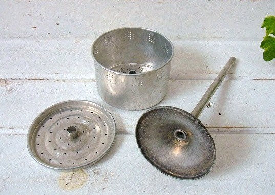 アメリカ西海岸・カリフォルニア ロサンゼルスで見つけました・・ホーロー製のアンティーク・パーコレータ(コーヒーポット)です。