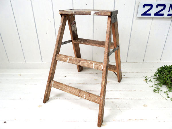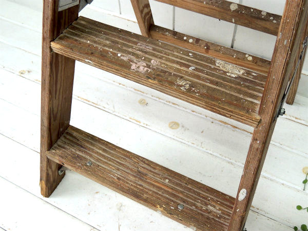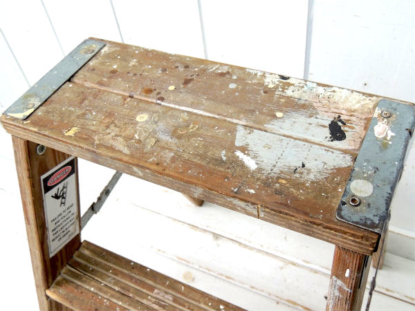 白いペンキの付いた木製・ステップラダー/脚立/ステップスツール USA
