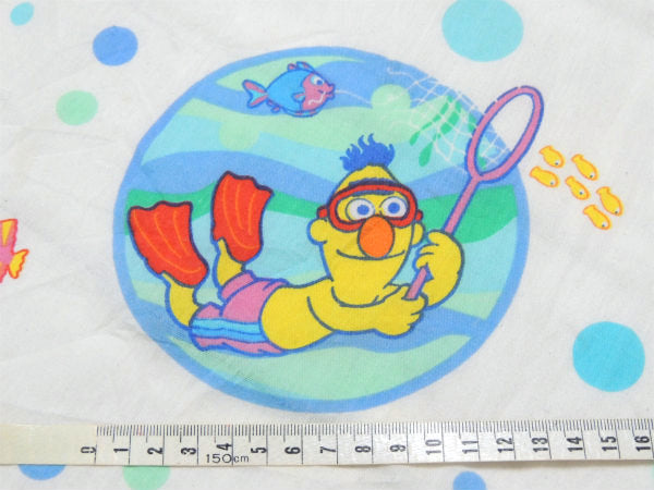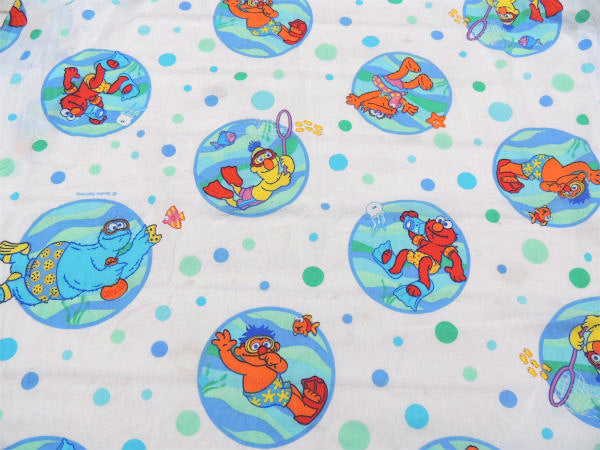 アメリカで見つけました・・『セサミストリートの仲間たち』のマリンレジャー柄・ベビーサイズ・USEDフィットシーツです。