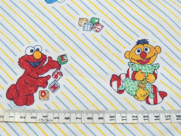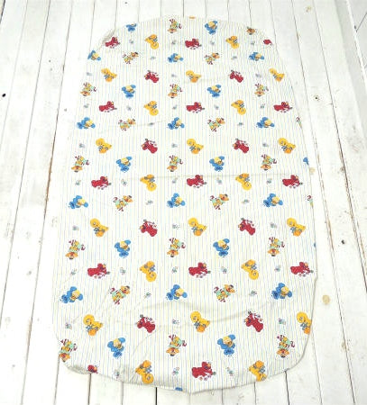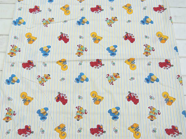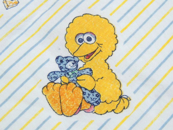 アメリカで見つけました・・『ベビーセサミストリートの仲間たち』のストライプ柄・ベビーサイズ・USEDフィットシーツです。