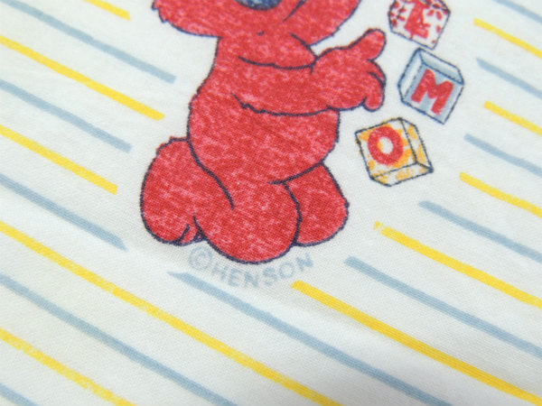 イエロー×グレー色のストライプ柄ベースに、“ベビークッキーモンスター”&“ベビーエルモ”&“ベビービックバード”&“ベビーアーニー”の、とっても可愛いプリントです。
