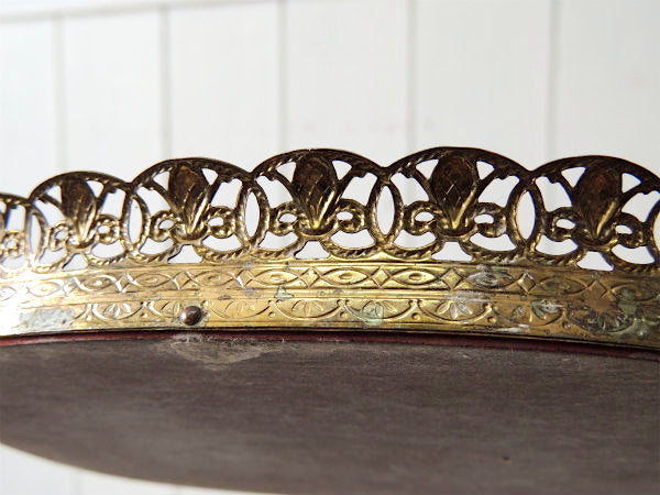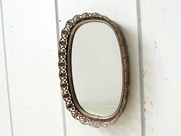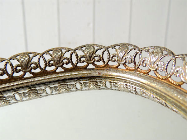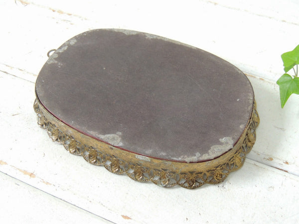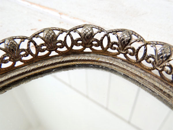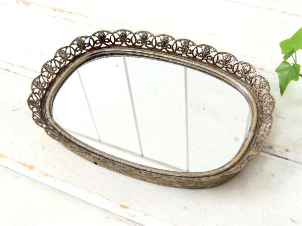 【フラワーモチーフ】透かしデザイン・小さなアンティーク・ミラートレイ/鏡/ジュエリートレイ USA