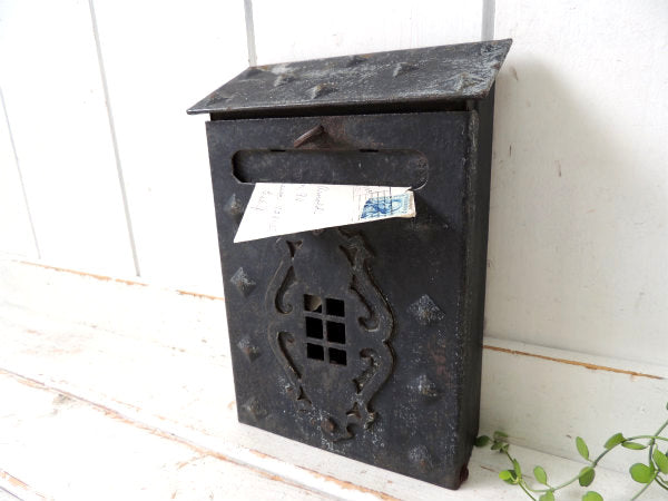 【USA・黒色・キャストアイアン製】アンティーク・メールボックス/郵便受け/ポスト