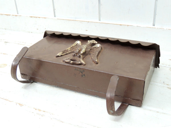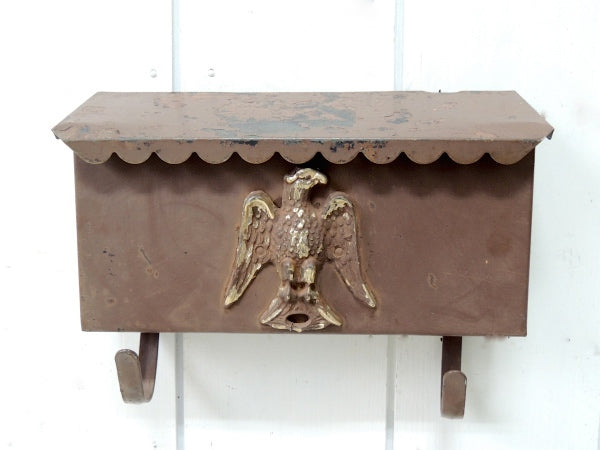 【イーグルモチーフ】新聞受け付き・ブラウン色・横型・ヴィンテージ・メールボックス/郵便受け/ポスト