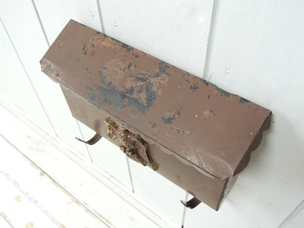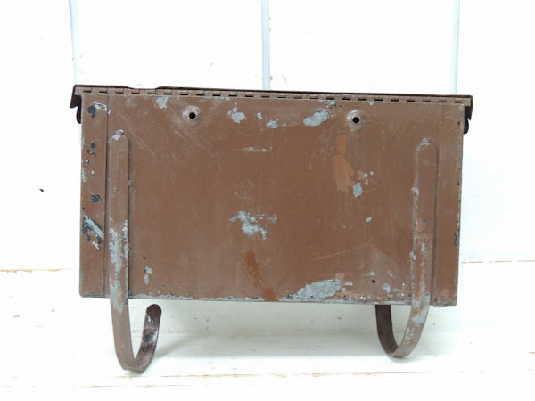 アメリカ・テキサス州で見つけました・・マットなブラウン色のメタル製・横型・ヴィンテージ・メールボックス(横型ポスト)です。