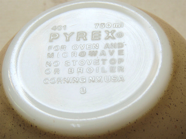 ボトムに【401 750ml PYREX®FOR OVEN AND MICROWAVE NO STOVETOP OR BROILER CORNING N.Y. USA 8】とございます。