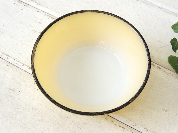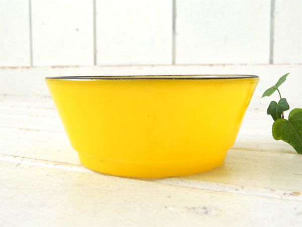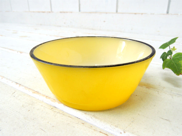 【Fire King】ファイヤーキング・イエロー×ブラックリム・サラダボウル/ヴィンテージ食器