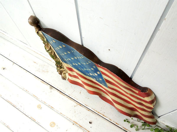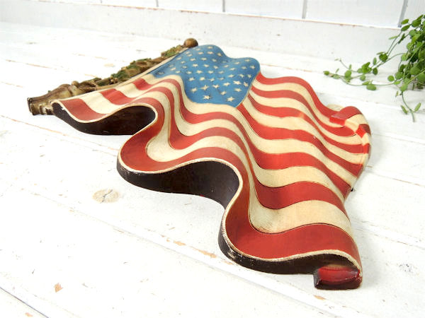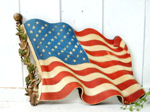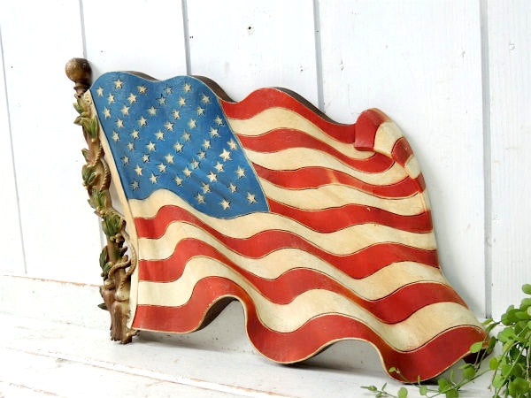 【波打ち・星条旗】1970s~・アメリカンフラッグ・ヴィンテージ・壁掛け式・サイン・看板