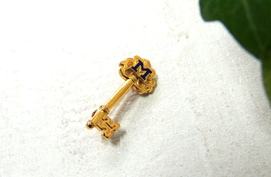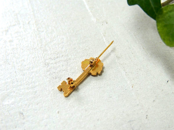アメリカ西海岸・カリフォルニアで見つけました・・ゴールドカラー"M" Key&鍵モチーフ・ヴィンテージ・キーブローチ(バッジ・ブローチ)です。