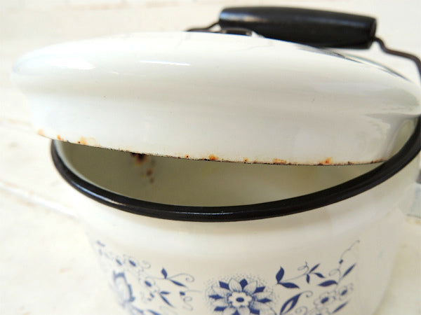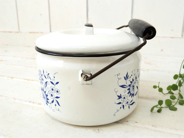 USA レトロな花柄・ホーロー・ヴィンテージ・ケトル ポット キッチン雑貨 キャンプギア