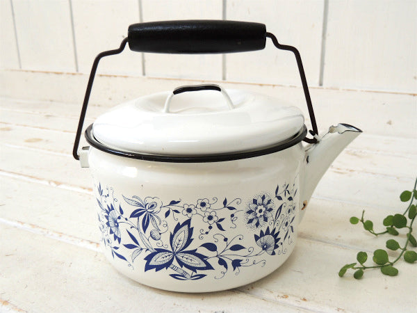 アメリカ南部・テキサス州郊外で見つけました・・ホーロー製の花柄・ヴィンテージ・ケトル(やかん)です。