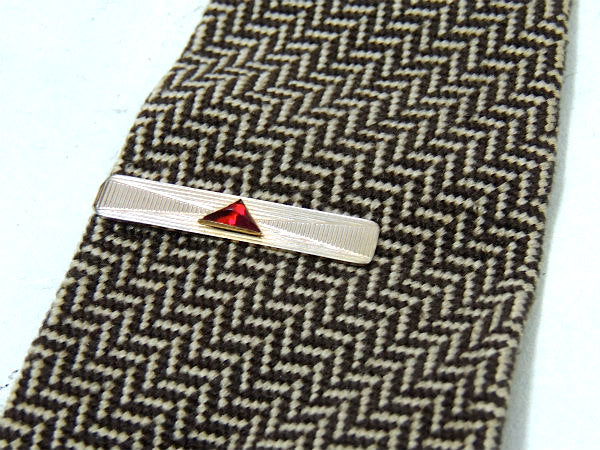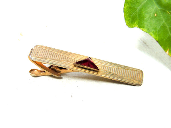 アメリカ西海岸・ロサンゼルスで見つけました・・1950~1960年代頃のゴールド×レッド・お洒落・トライアングル▲デザイン・ネクタイ用・タイピンです。
