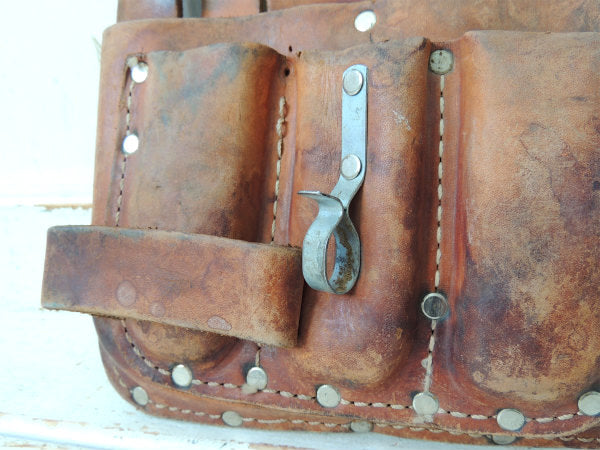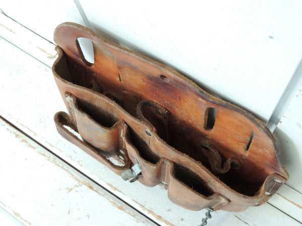 アメリカ南部・テキサス州郊外で見つけました・・1932年に誕生したアメリカの老舗ワークギア&ツール用品『マグワイア ニコラス社(McGuire Nicholas)』のレザー製・5ポケット・ヴィンテージ・ツールポーチ(ツールエプロン)です。