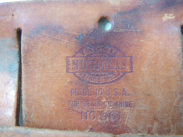 上部中央に【WORK★GEAR NICHOLAS ★SINCE 1932★ MADE IN U.S.A. TOP GRAIN COWHIDE NO.401】の型押しサインがございます。