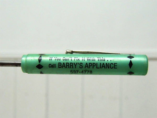 アメリカ西海岸・カリフォルニアで見つけました・・ブルーカラー”BARRY'S APPLIANCE ”アドバタイジング・ヴィンテージ・ユーティリティー・ドライバー(ペン型・工具・マイナスドライバー・ポケットドライバー)です。