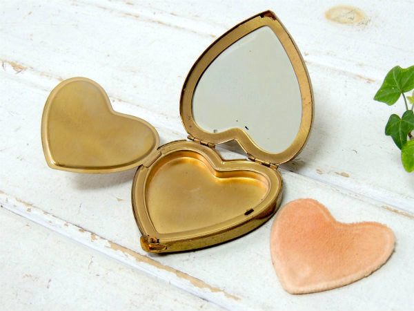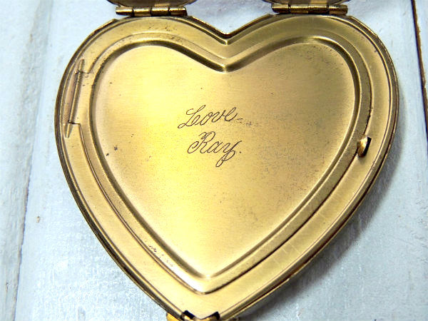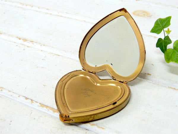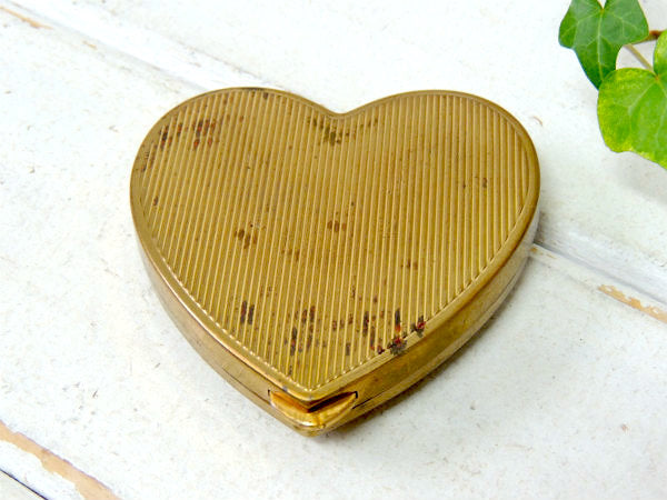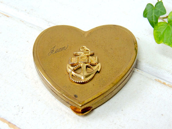 アメリカ南部・テキサス州・ヒューストンで見つけました・・『USN(アメリカ海軍)』のハートの形をしたゴールドトーン・アンティーク・コンパクトミラーです。