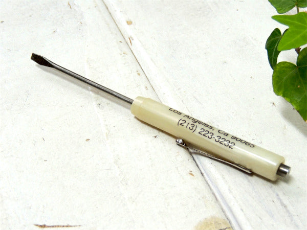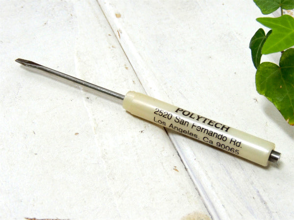 アメリカ西海岸・カリフォルニアで見つけました・・工業系”polytech・ポリテックインダストーリーズ”アドバタイジング・ヴィンテージ・ユーティリティー・ドライバー(ペン型・工具・マイナスドライバー・ポケットドライバー)+磁石付きです。 デッドストック・未使用 MADE IN USA ホワイトベースに黒の英数字【polytech 2520 San Fernando Rd. LA CA 90065 213...】と入っております。 美品ですが、経年による多少のスリキズ等ございます。 画像(写真)でのご判断を宜しくお願い致します。 ■size  :約 W13.5cm   ■コンディション : ★★★★☆ ■レターパックライト¥360対応可(追跡サービスあり・補償なし) ※ご注文の際、お手数ですがメッセージ欄に『レターパックライト希望』とご記入下さい。新たにお見積もりをメールにてお知らせさせていただきます。