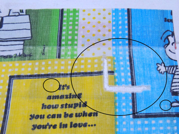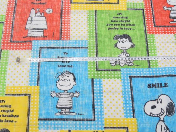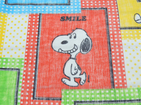 【スマイル・スヌーピー】ピーナッツの仲間・パネル柄・70'ヴィンテージ・ユーズドシーツ(フラット)