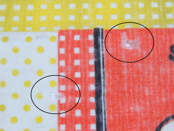 経年により全体に使用感・プリント&生地の薄れ・一部に小さなヨゴレ箇所・数カ所にヤブレ箇所&小さな穴箇所が見られます。