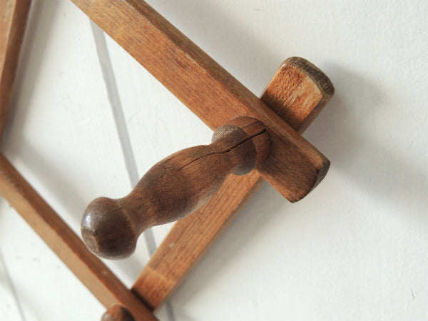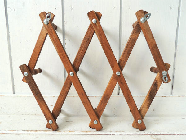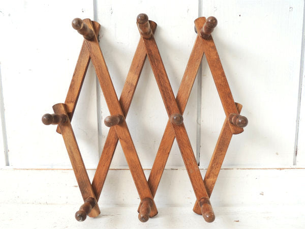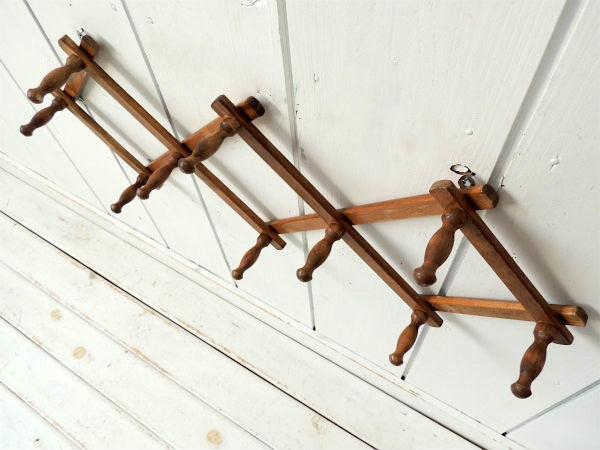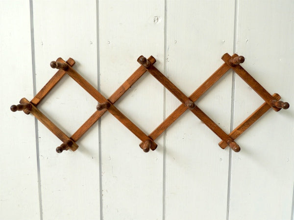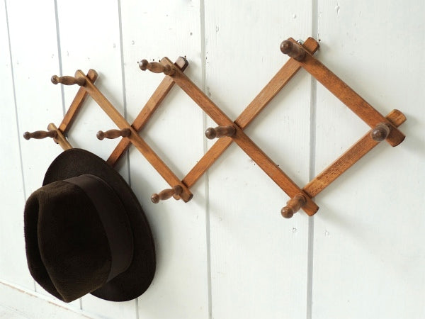 ノスタルジック・木製壁掛け・ジャバラ式・アンティーク・ハットラック/コートフック USA