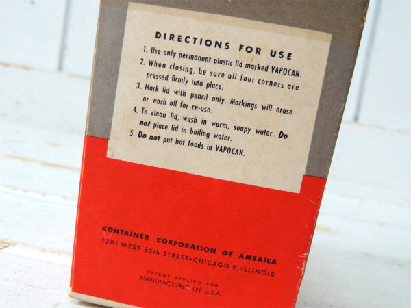 アメリカ西海岸・カリフォルニアで見つけました・・『VAPOCAN』のデッドストック・50's・ヴィンテージ・紙製・フリーザーコンテナ(キッチン雑貨)です。
