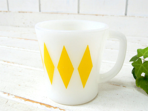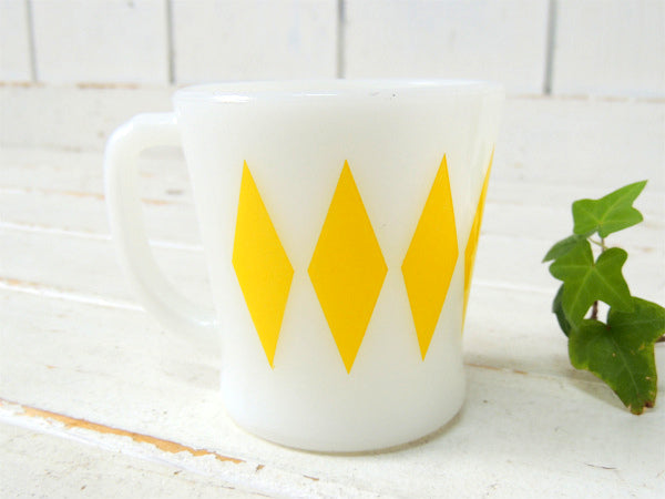 【Fire King】ファイヤーキング・イエロー・ダイヤ・Dハンドル・マグカップ/50's