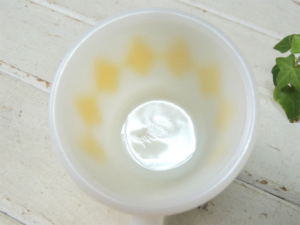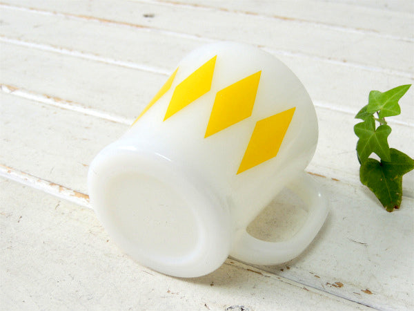 アメリカ南中部・オクラホマ州で見つけました・・『ファイヤーキング』のイエロー・ダイヤ柄・Dハンドル・マグカップです。