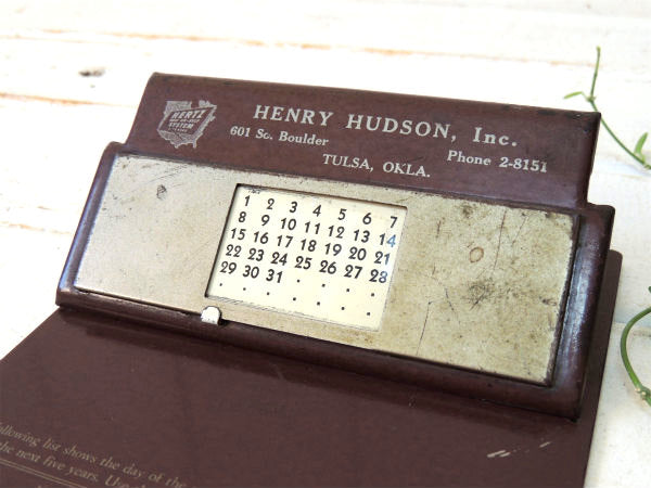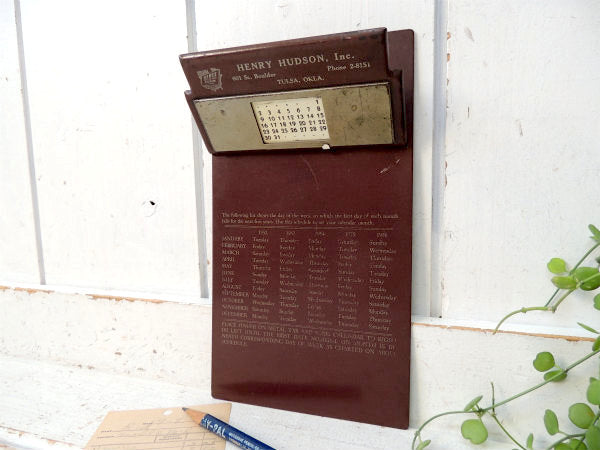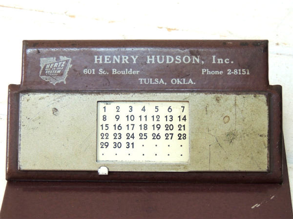 アメリカ南部・テキサス州で見つけました・・1952's【HERTZ DRIVE】ハーツレンタカー・カレンダー付きのメタル製・アンティーク・クリップボード(バインダー)です。