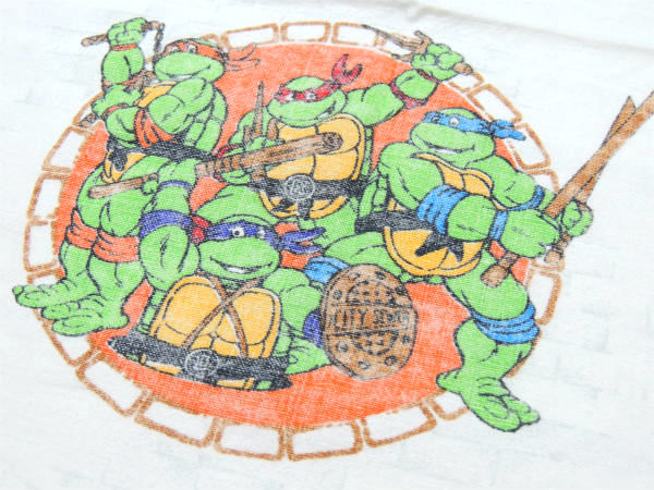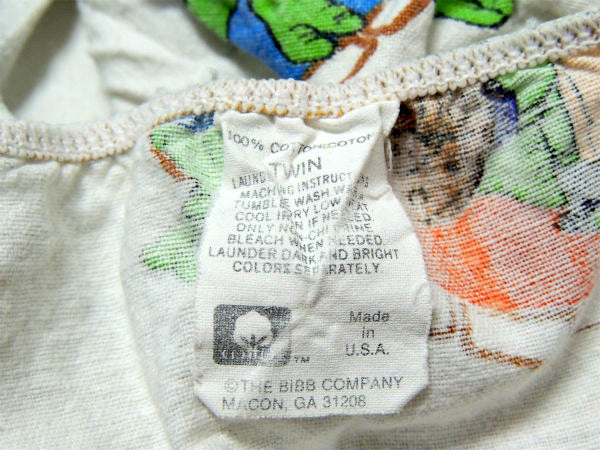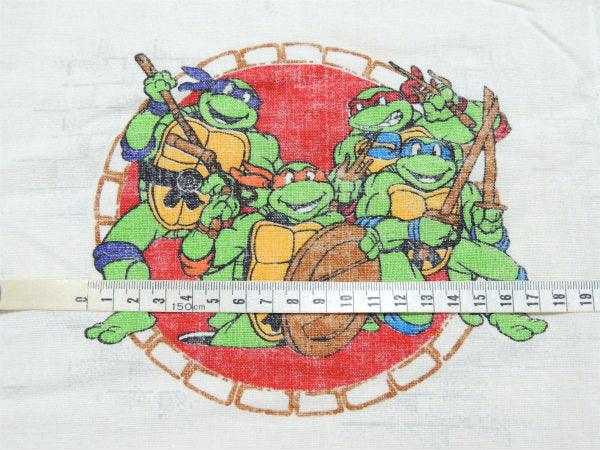 アメリカ西海岸・カリフォルニア州で見つけました・・ニューヨークの下水道に住み、悪ものや犯罪者と戦う亀の忍者4人グループ『ミュータント・タートルズ』のヴィンテージ・USEDフィットシーツです。(ツインサイズ)