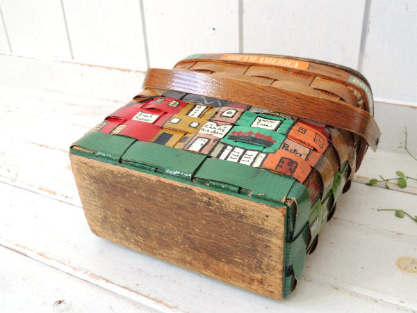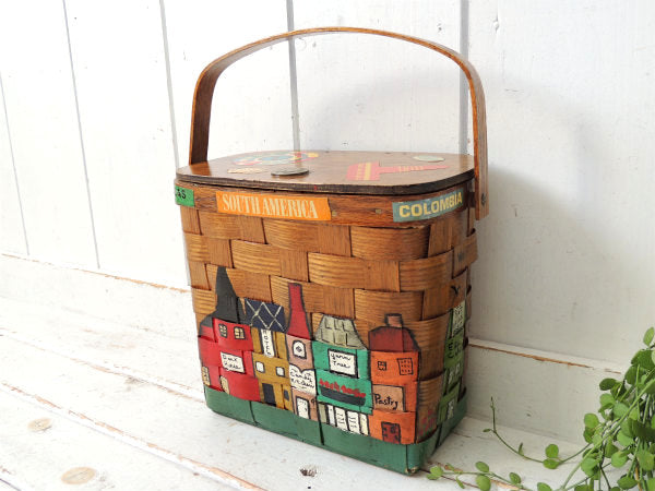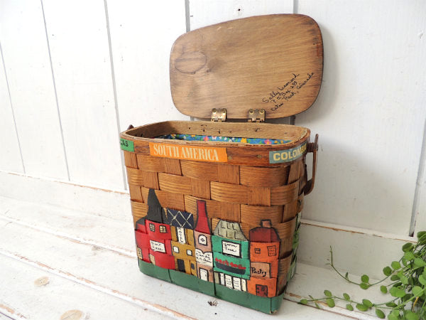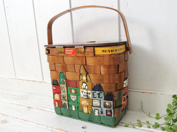 アメリカでも人気の高いコレクターアイテムで、カラフルな南米の可愛い町並みがハンドペイントで描かれた、木製バスケットです。