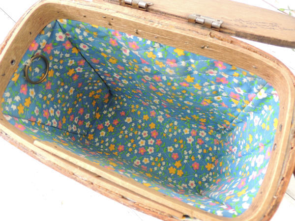 内張りはレトロ可愛い花柄のキルティング地です。