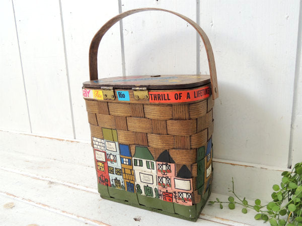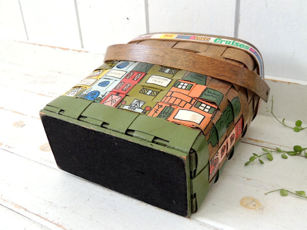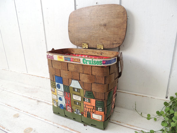 アメリカでも人気の高いコレクターアイテムで、ヨーロッパのカラフルな可愛い街並みがハンドペイントで描かれた、木製バスケットです。