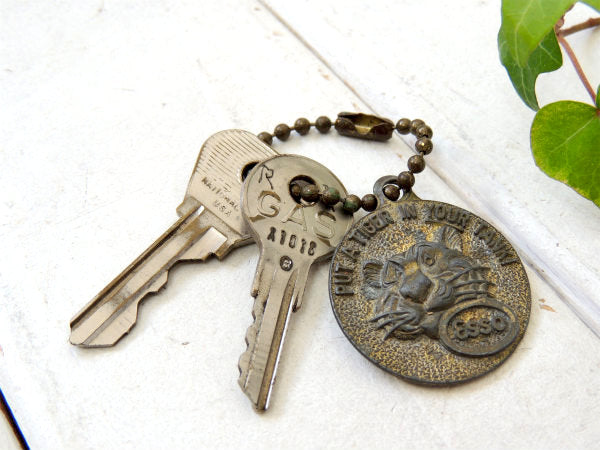 【エッソ・ESSO】TIGER・アドバタイジング・ヴィンテージ・キーホルダー・USA鍵2本・KEY