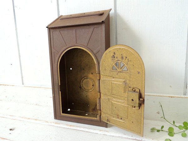 【FULTON】ドア型・ブラウン色・ティン製・アンティーク・メールボックス・郵便受け・ポスト USA