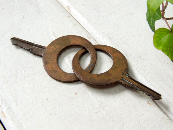 アメリカ西海岸・カリフォルニアで見つけました・・珍しいダブルデザイン・アンティーク・真鍮製・”知恵の輪”のような古い鍵(キー)です。