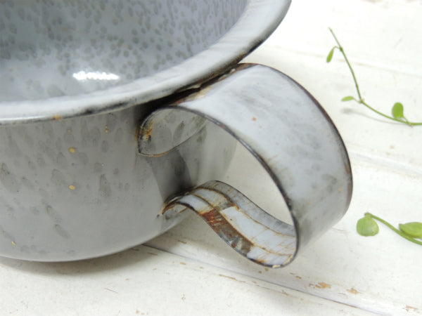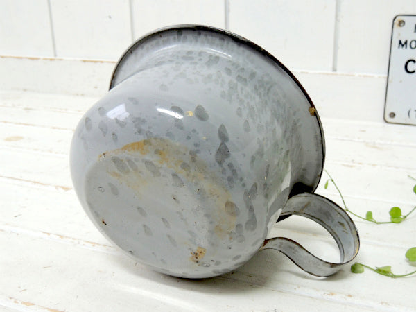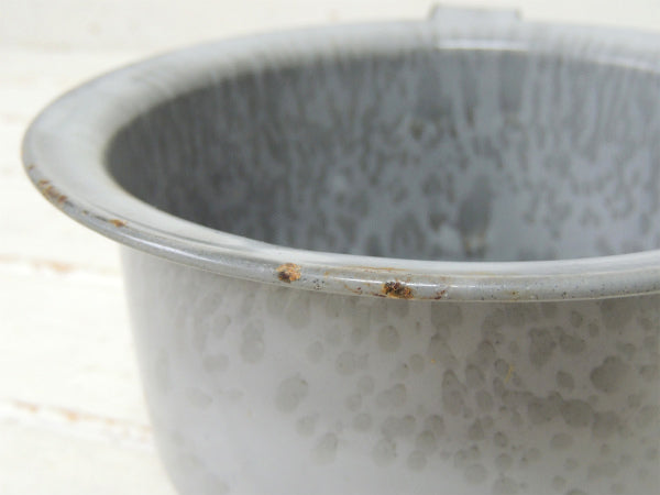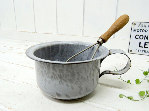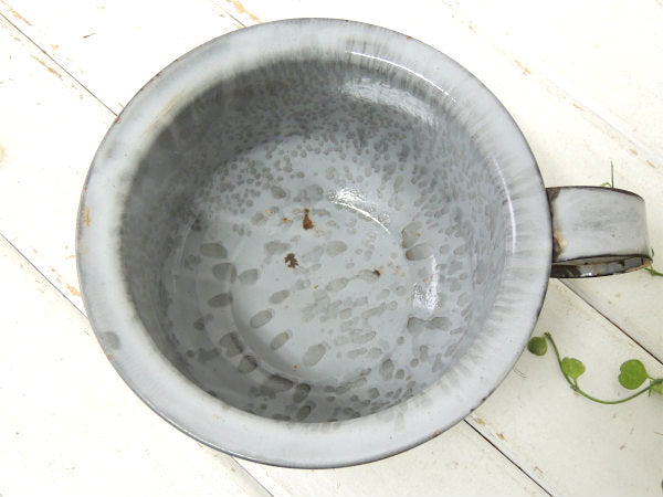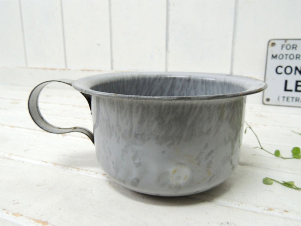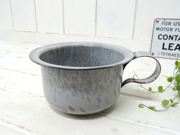 グレー×ダークグレー色・ホーロー製・ハンドル付き・アンティーク・ボウル/ワンハンドルボウル USA