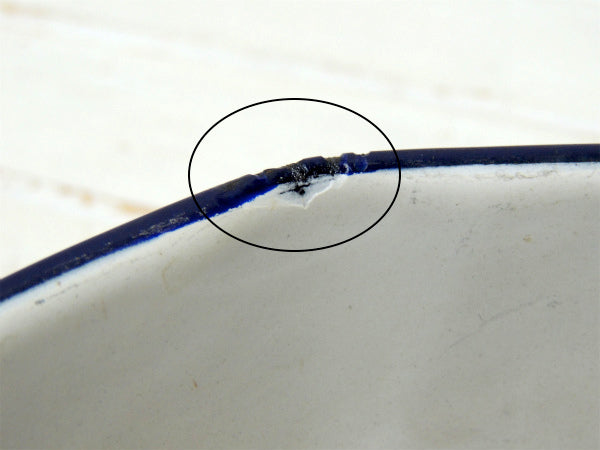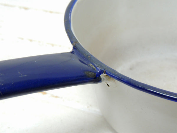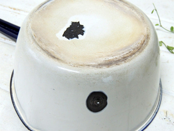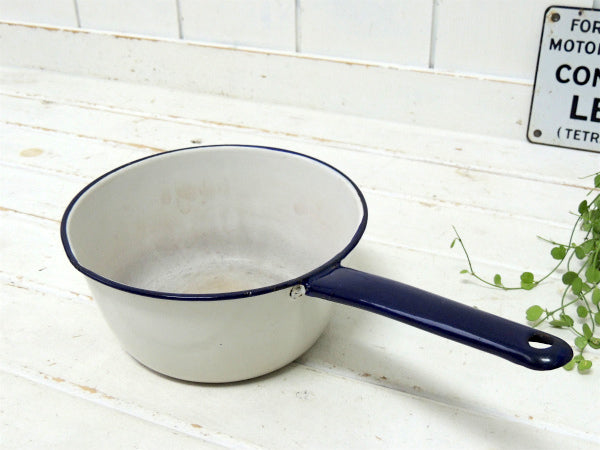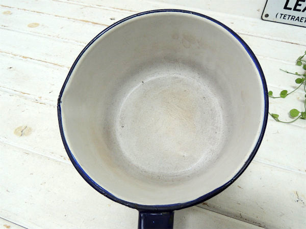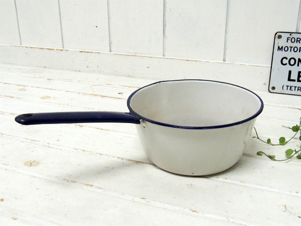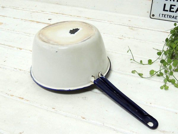 【ホワイト×ネイビー】ホーロー製・アンティーク・片手鍋/ソースパン/エナメルウェア USA
