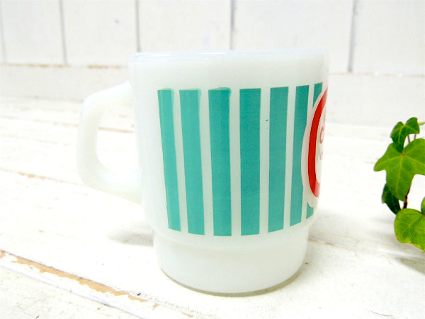 ミルクガラス製のホワイトボディに、ミントグリーン色のストライプ、【Stuckey's COFFEE CLUB】の赤文字プリントが入った、古き良き時代のアメリカを彷彿とさせるポップなデザインです!!