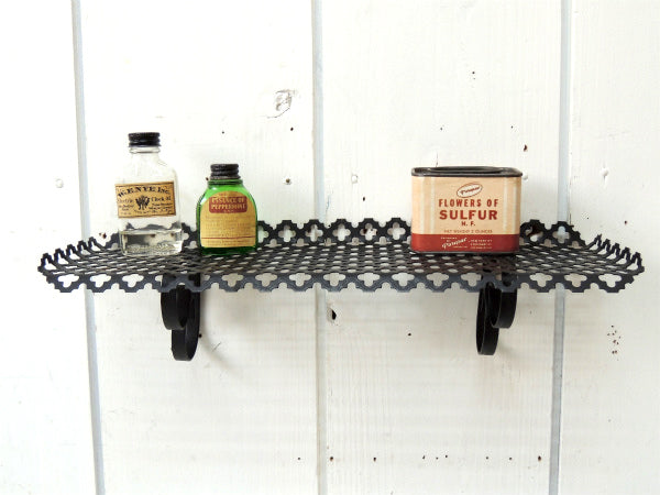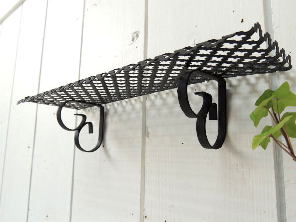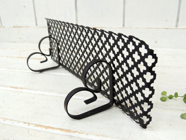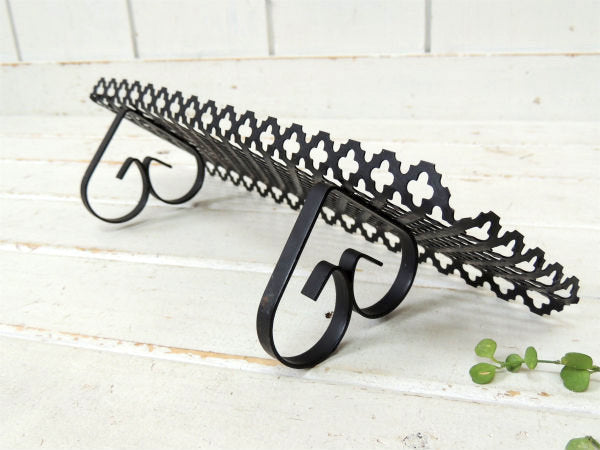 【ミッドセンチュリー】小さな黒色・アンティーク・ウォールシェルフ/飾り棚/型抜きデザイン USA